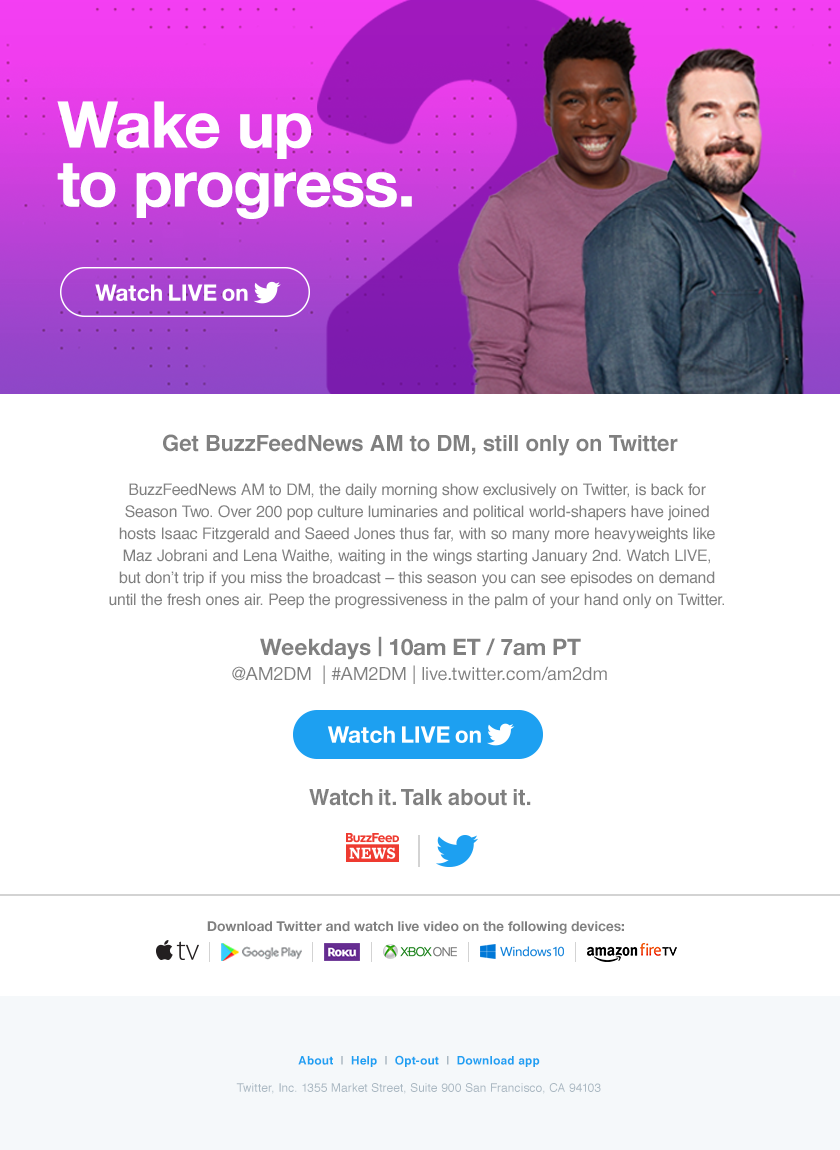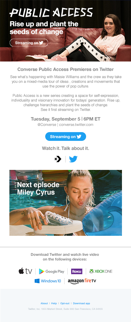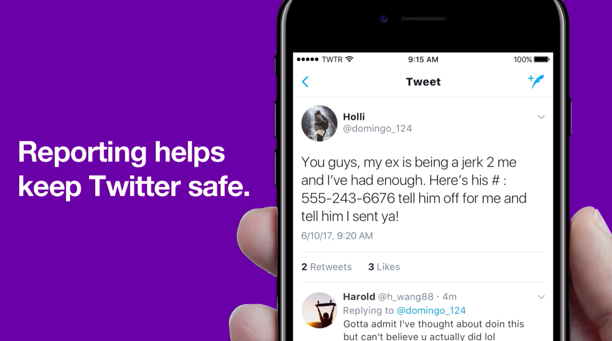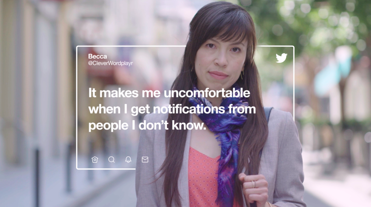 I wrote scripts for a series of on-platform UX informational commercials to introduce and explain the use of Twitter safety features. I also co-produced the shoot, and auditioned, cast, and directed talent during on-set live takes.